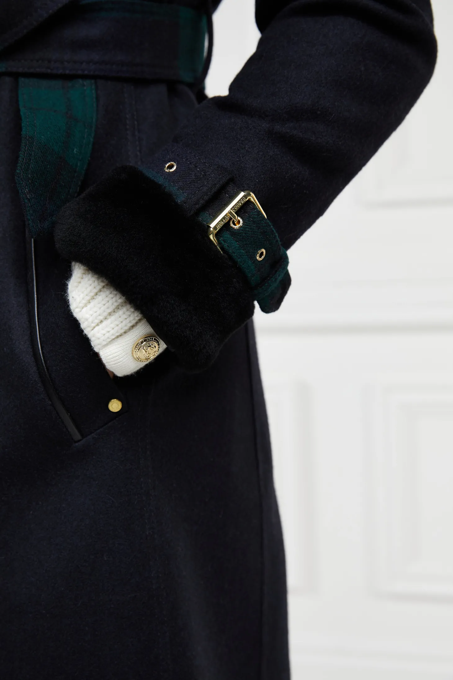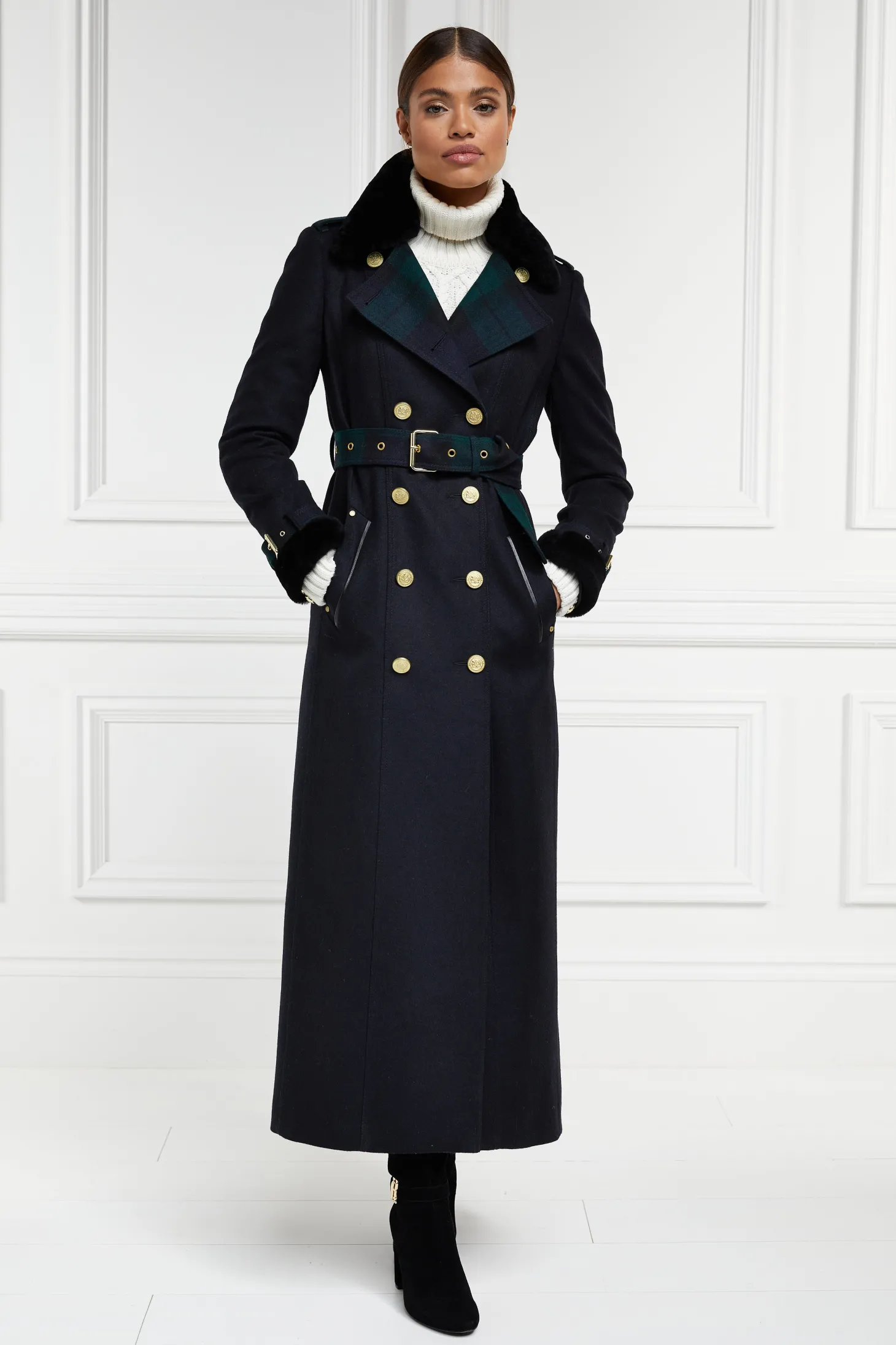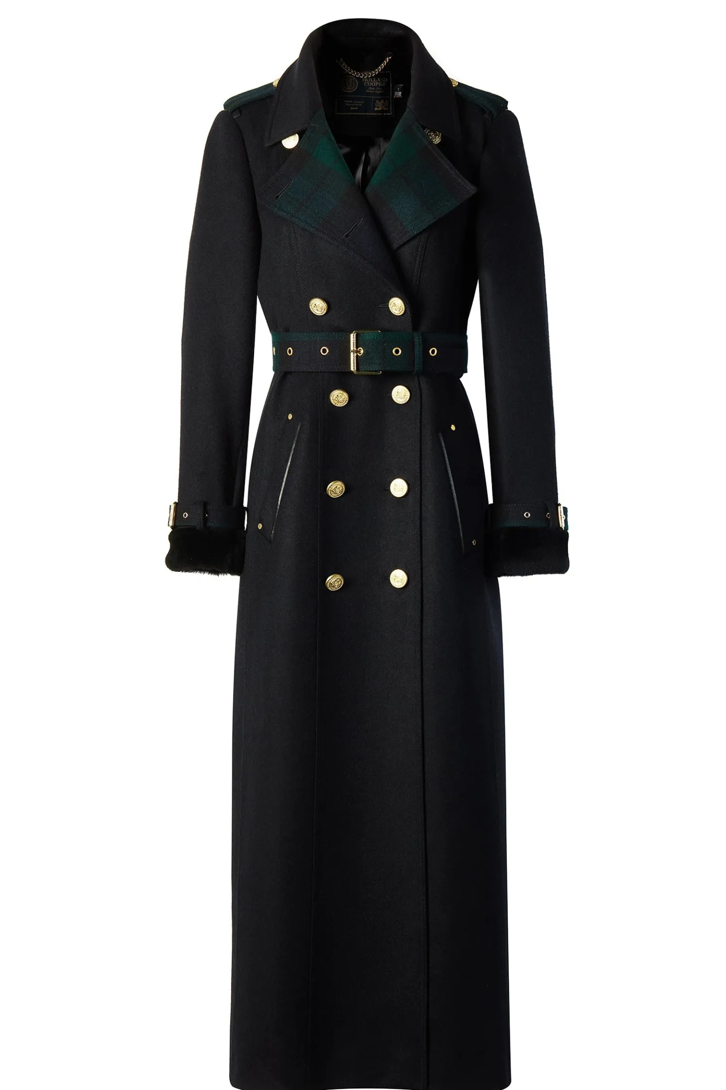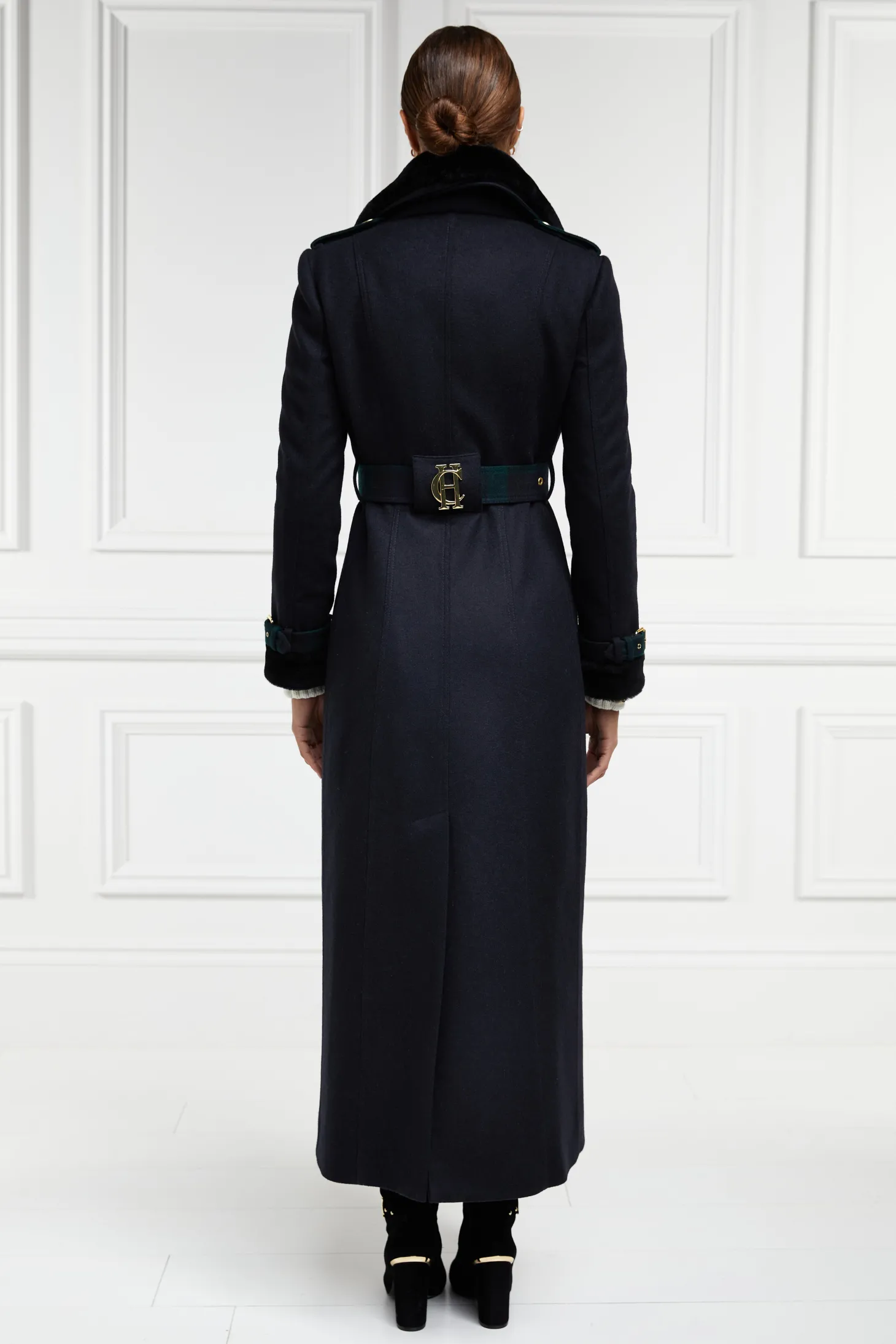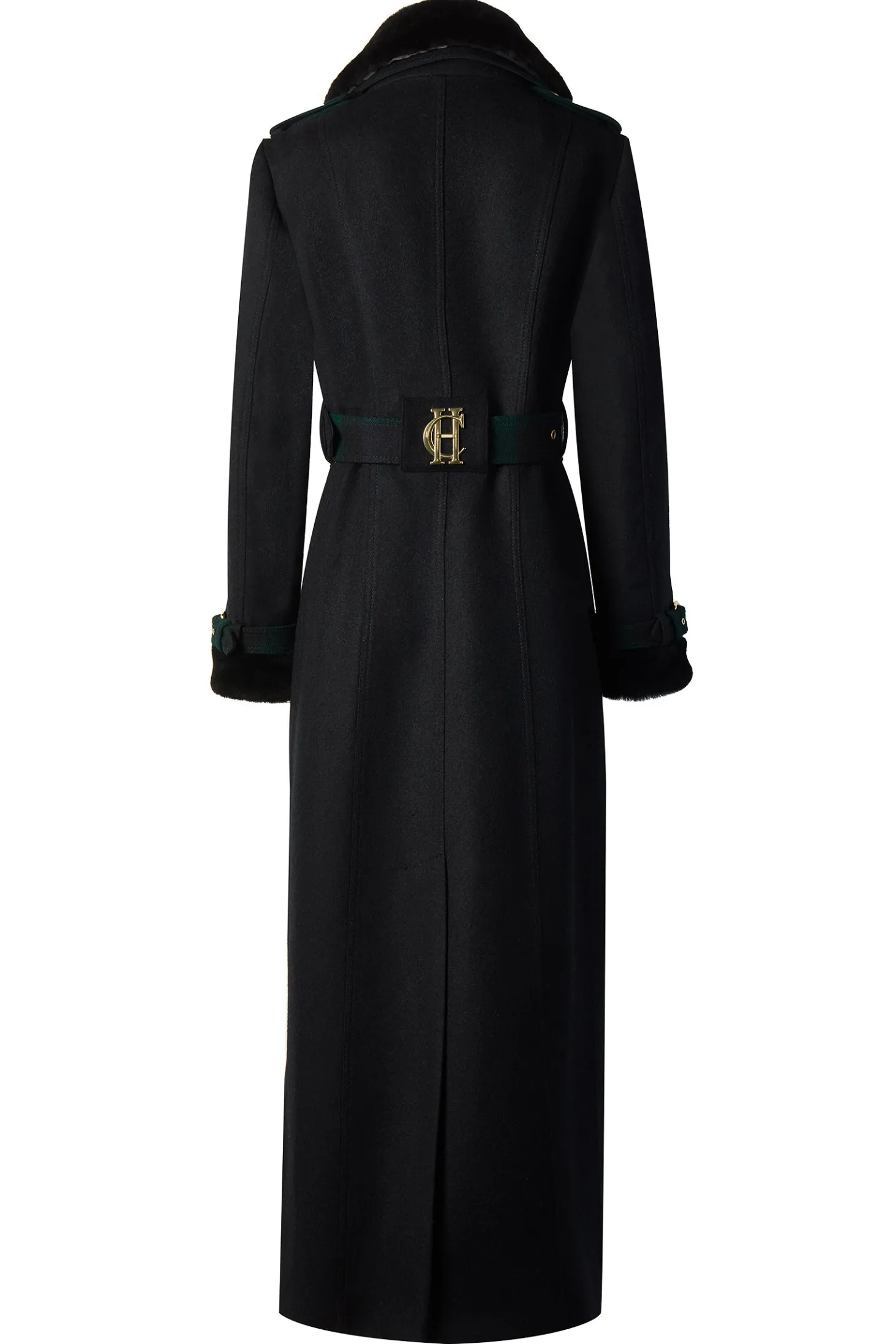 A luxurious adaptation of HC's signature wool trench coat, this coat comes complete with accented collar and cuffs made from the finest Merino sheared lambswool. Classic and timeless, the full length trench coat is a wardrobe staple and a lifetime investment. A fitted design that complements any figure, its double brea