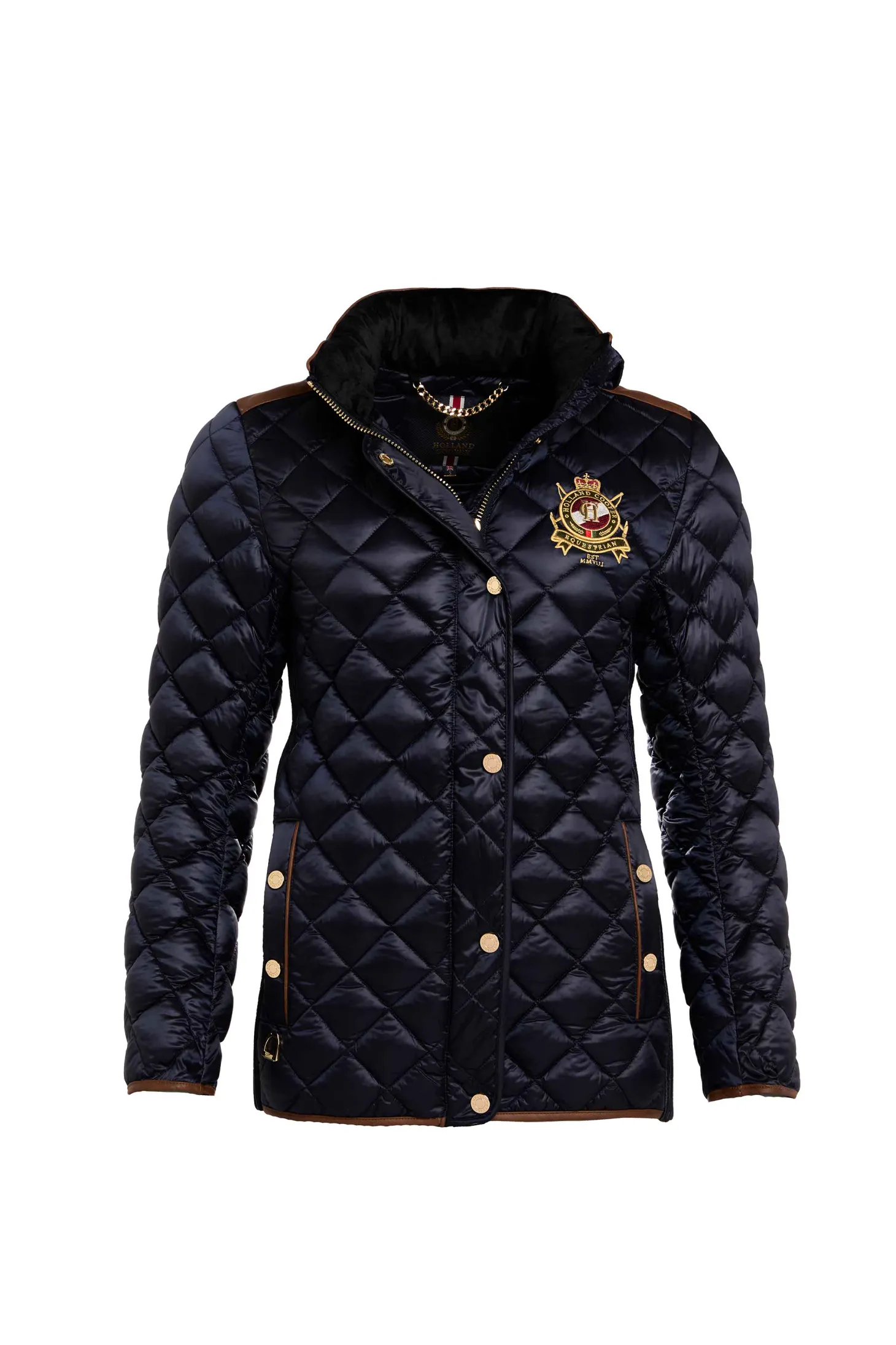 Our beautiful diamond jacket embraces both sophistication and elegance. Made from a sumptuously soft high-shine fabric and filled with a premium faux down, its flattering design combines style with practicality. Delicate pin-tuck details at the seams provide gentle elasticity allowing for full range of movement. Detailed with our signature gold hardware.
