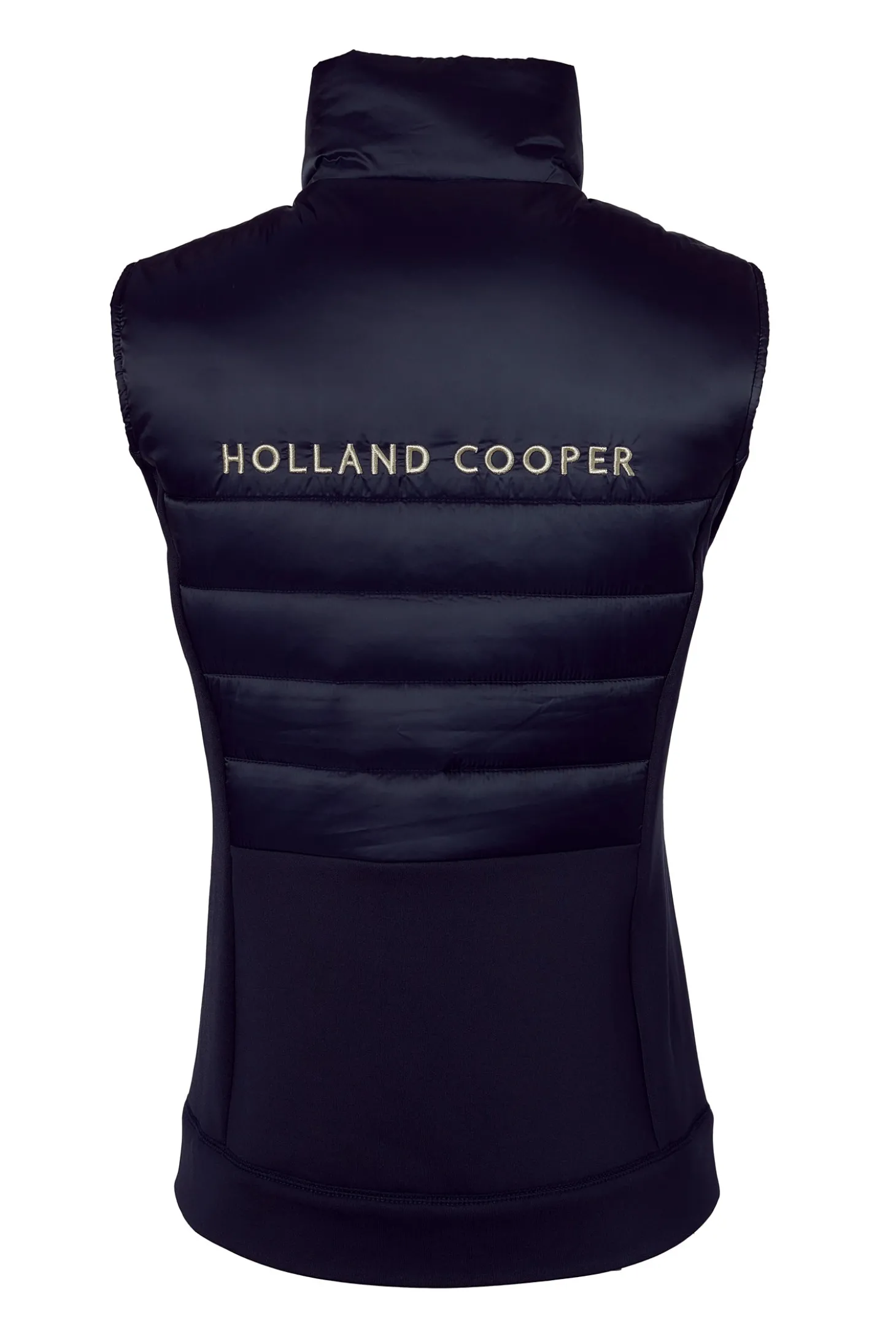 This gilet features a padded upper filled with Sorona™ for superior warmth. The high-density poly-nylon shell fabric ensures durability, while the performance jersey body enhances breathability and movement. Stay dry with waterproof zips on the front pockets and a coated zip closure. The high build embroidery on the back adds a touch of sophistication.