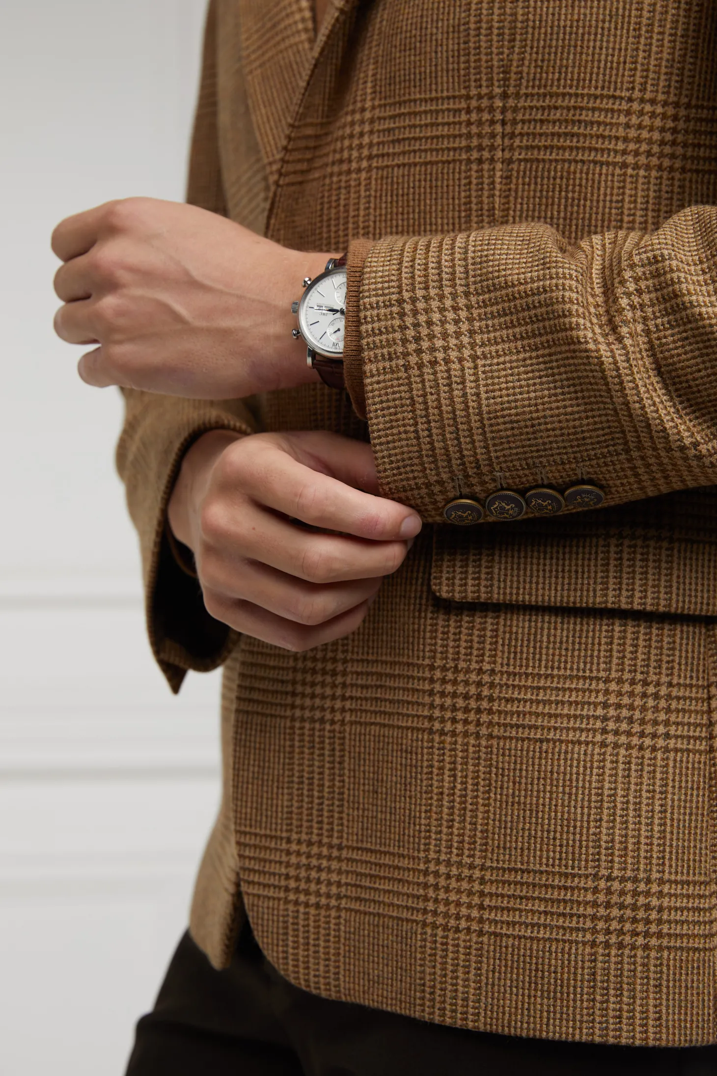 Designed with a single-breasted silhouette and lightly padded shoulder construction, this Single Breasted Blazer showcases a preppy style with a modern elevation. Drawing inspiration from our British heritage, each blazer has been carefully crafted in our UK mills from the finest of Scottish tweeds. With classic notch lapels and neat horn buttons to fasten, the contrasting under collar makes for a contemporary twist. Elegantly lined with a luxurious satin twill with double welt pocket detailing. Finished with traditional Holland Cooper detailing, braided lapels and practical chain hanger loop.