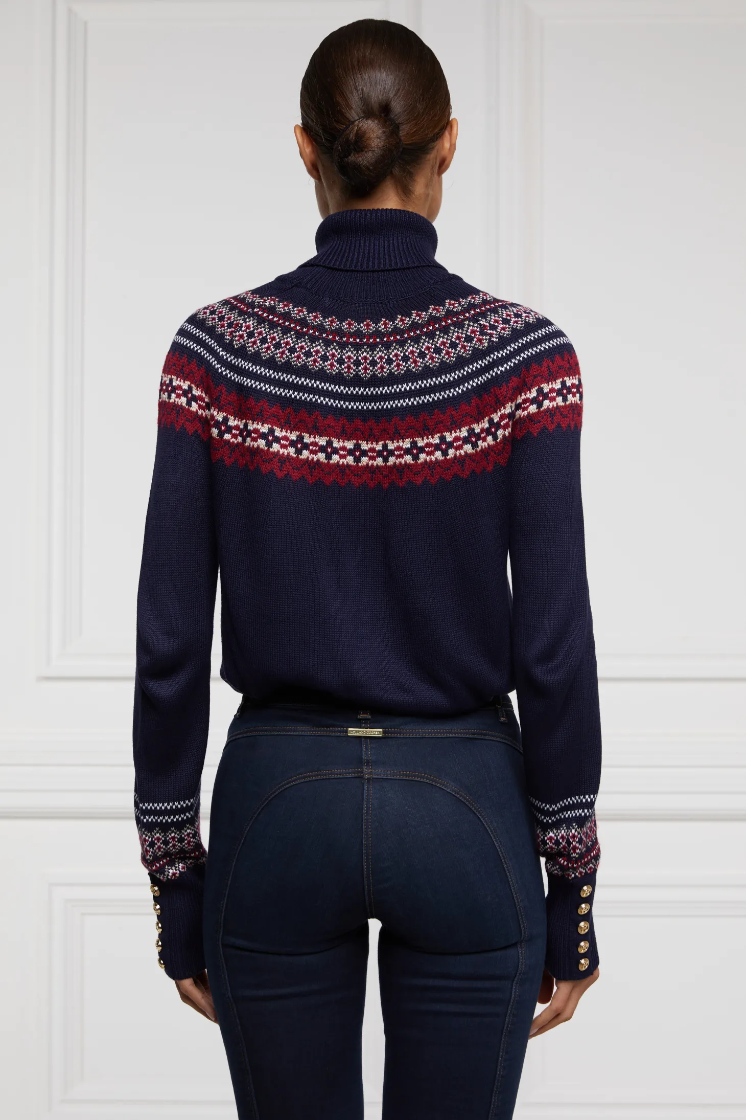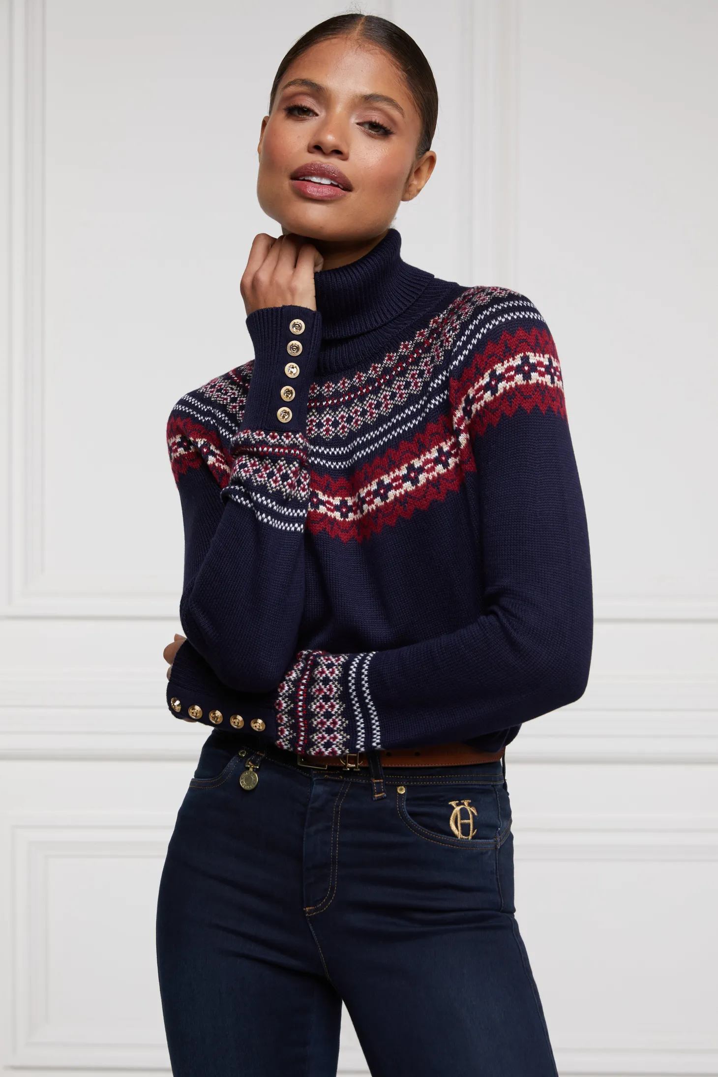 Created with a classic fairisle design that stretches across the shoulders, this knit has been designed with a relaxed fit. Made from a super soft and lightweight yarn with a cosy roll neck and ribbed cuffs. Detailed with our iconic HC branding.