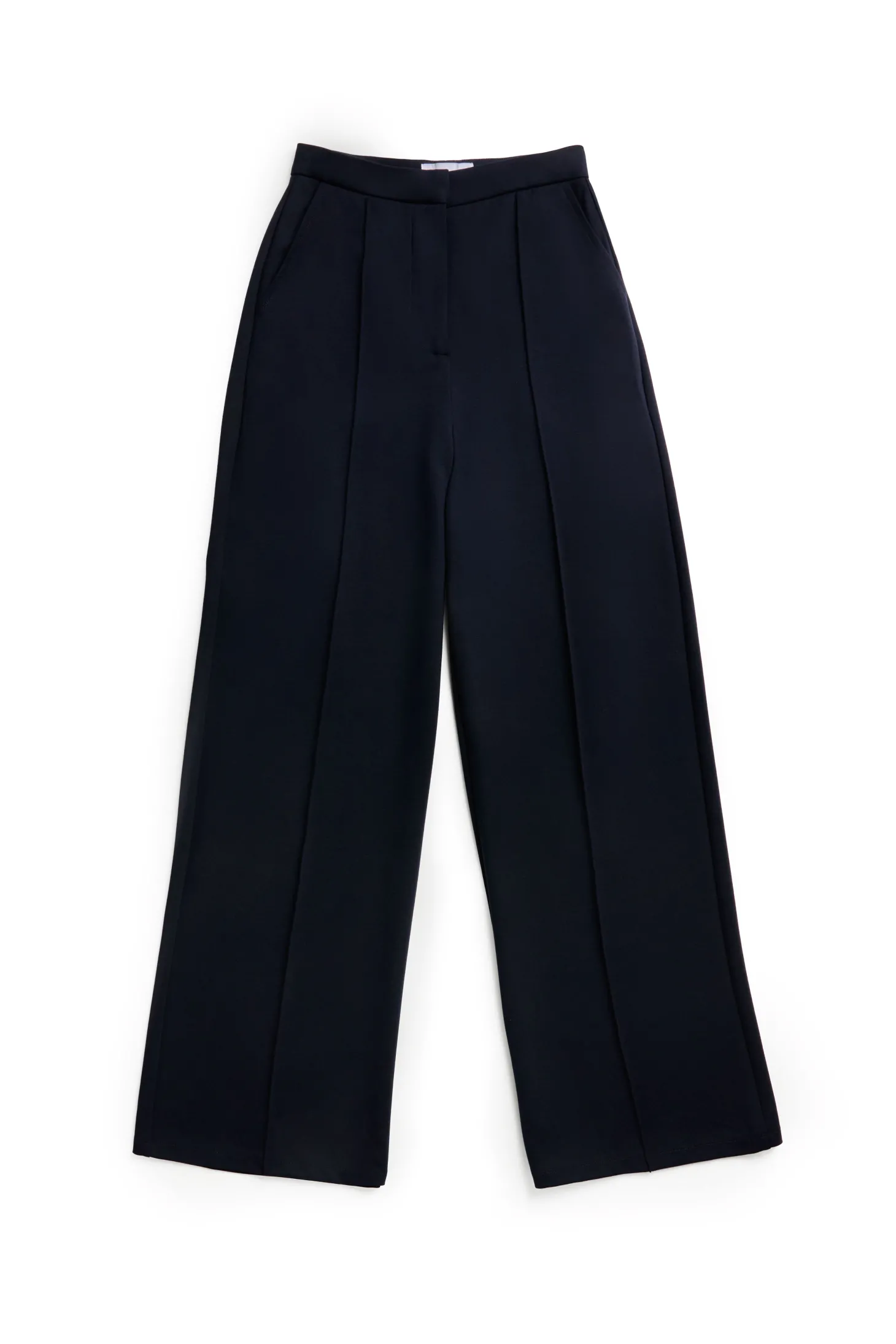 Understated and stylish, these wide leg trousers have been designed with a relaxed fit with a contemporary aesthetic. Designed with invisible pockets, these trousers are ideal for wearing casually or dressing up. Detailed with a subtle HC rivet to the back welt pocket. Wear with trainers for an every day casual style or elevate with a pair of heels.
